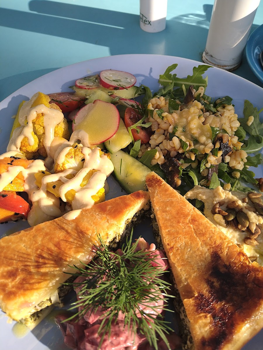 In terms of fare, Found Cafe focuses on a thoughtful mix of vegetarian and vegan options, with a clear commitment to ethically sourced ingredients. The menu highlights include standout baked goods like courgette and lime cake or the gingerbread tree, alongside fresh and hearty choices such as spanakopita, avocado toast, and a vegetarian-friendly English breakfast. The tofu "bang bang" dish, while not part of the primary menu here, gets notable mentions from regulars which hints at the kitchen’s willingness to explore bold flavors.